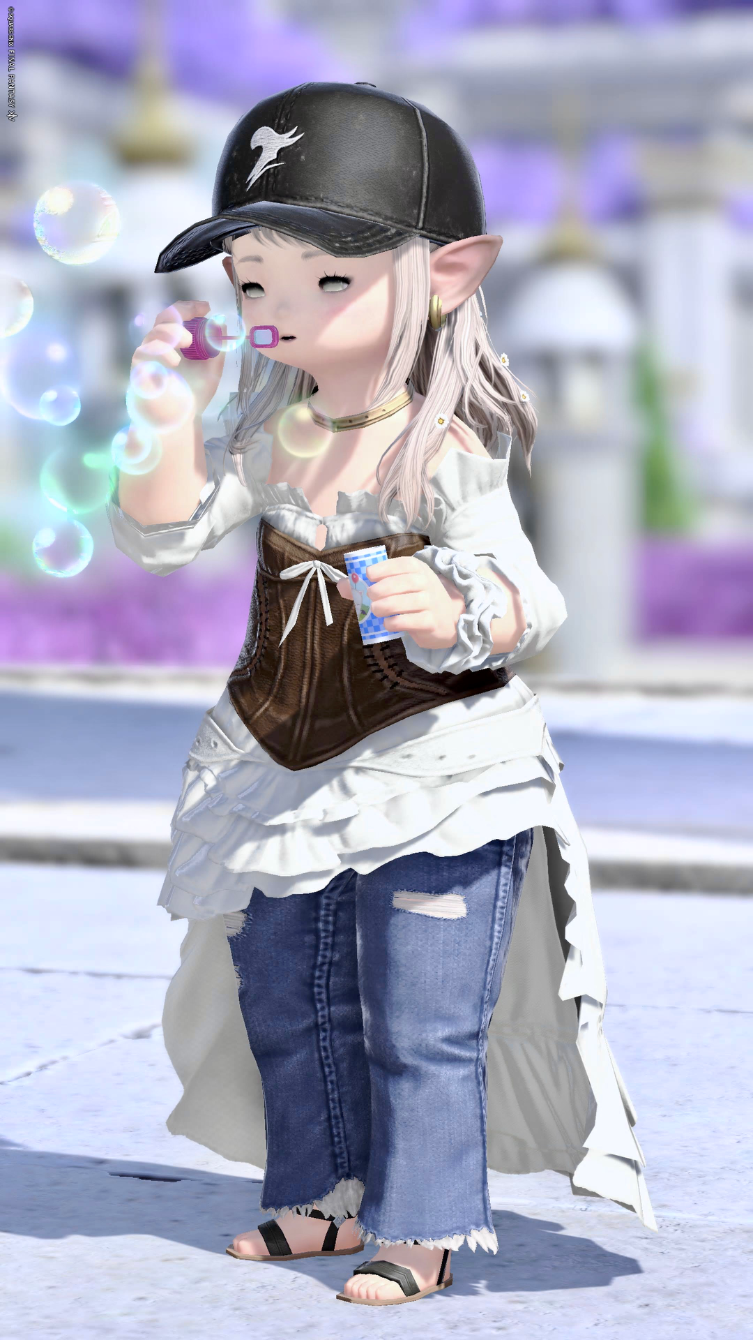 ワンピースに合わせた白いシュシュがポイントです!アクセはゴールドでまとめました