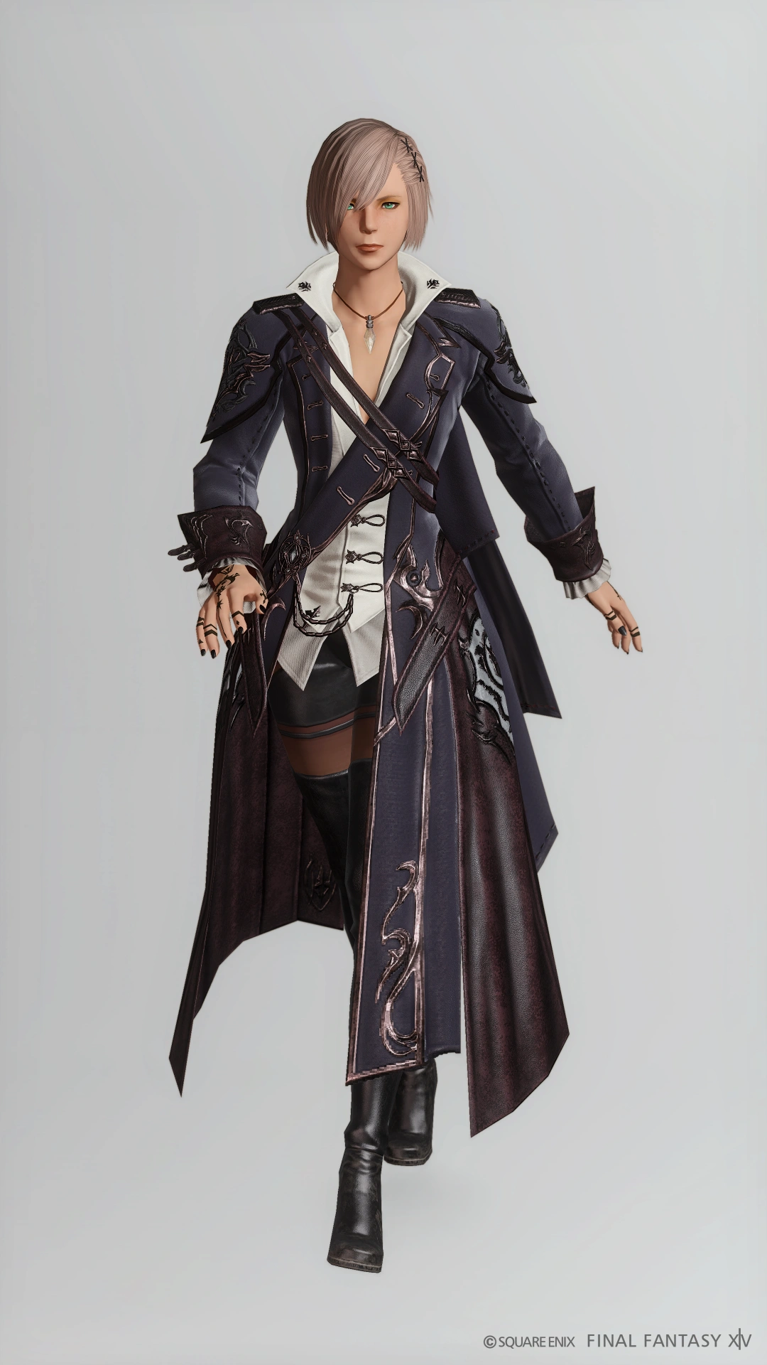 昨年冬までガンブレで着てたやつ 赤魔AFベースですがヴァイパーとかも行けそうです ケチって安いカララントを使いましたが、コートの革部分に少し赤みが入っているのでジェットブラック+ピュアホワイトのほうが潔く見えるかもしれません キングダムテール首はきれいで存在感のある水晶のペンダントで使いやすいです