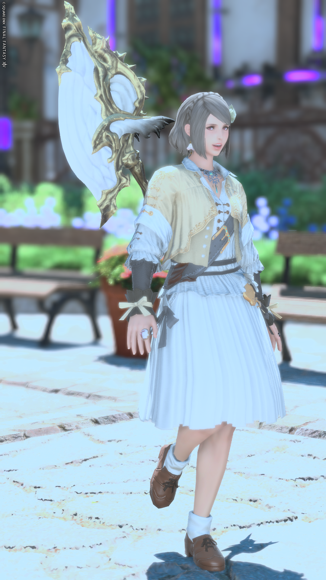 #春コーデ に応募してみよう!という事でハイランダーで春っぽいコーデ! お花はたくさんあった方が賑やか華やかでよい! ジェムソフォス上着は華やかだけど軽やかな雰囲気もあるので、ボーンイエローとスノウホワイトの少し淡い色をメインにして、東方麗人袴下を合わせてみました。