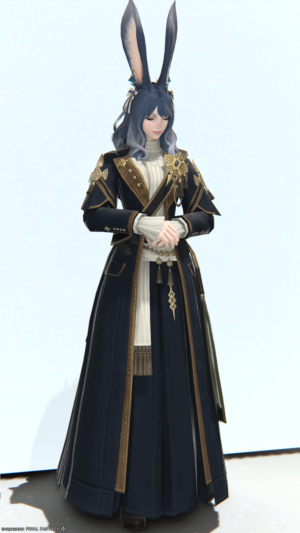 シックな青を基調に金の装飾が映える格式のある感じをイメージしました。このSSでは見えないですが、角度によっては足首辺りから見えるヒールが好みです。