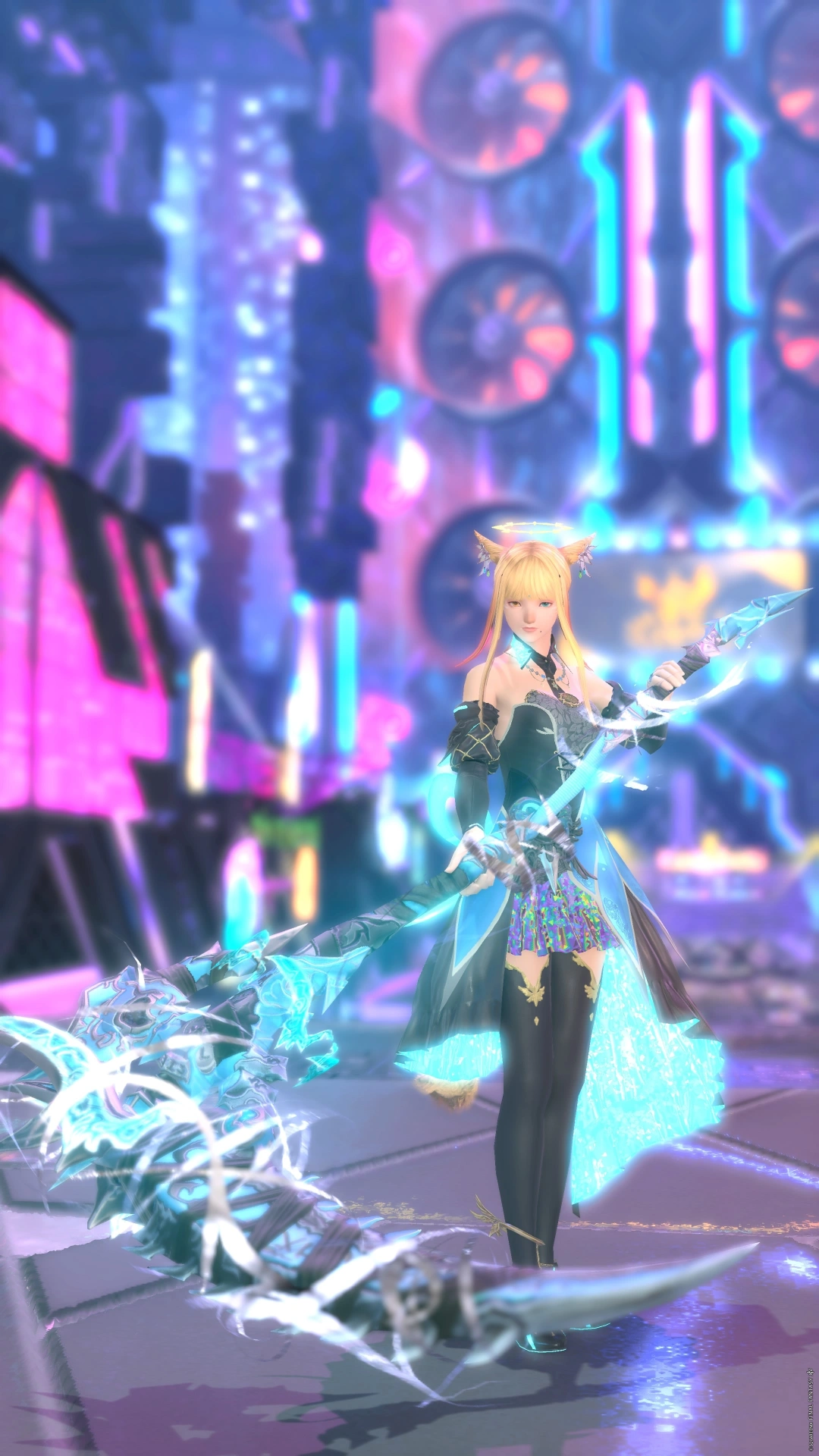 胴装備は4/28に発売されたスフェーン衣装のネオクイーン・ドレスを着用しています。※照合取れ次第編集します。 光の戦士がスフェーンの意志を継いで闘う姿をイメージしました。 8.0トレーラーがリーパーなので、それにあわせてジェットブラックでリーパーっぽさを出しました。