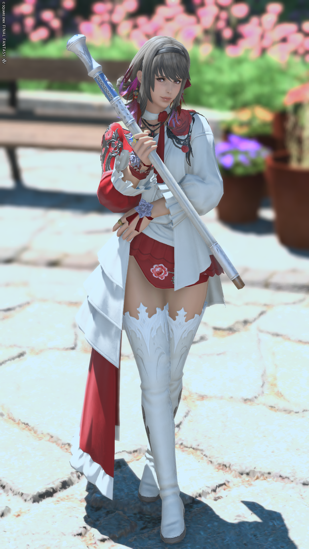 コートリーラヴァー・スカウトシャツを買ってたのにミラプリするのを忘れていたので、メンテ始まるギリギリにミラプリ作りました😂 脚のバラの刺繍に合わせて上着は赤と白に。 脚がアシメで極端に片方が短いのでセクシーになりすぎないよう、足装備を長めにしてバランスを取ってみました。 多少の露出はあるけど、可愛い雰囲気になったかなぁ〜と思います!